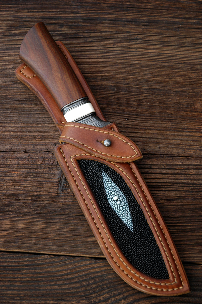 Pouzdro: z hovězí usně v kombinaci s kůží rejnoka